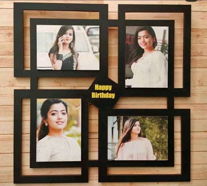 Celebrate special moments with this Custom Happy Birthday Photo Frame, featuring a modern black collage design with 4 picture slots. Perfect personalized wall décor and an ideal gift for birthdays and special occasions.