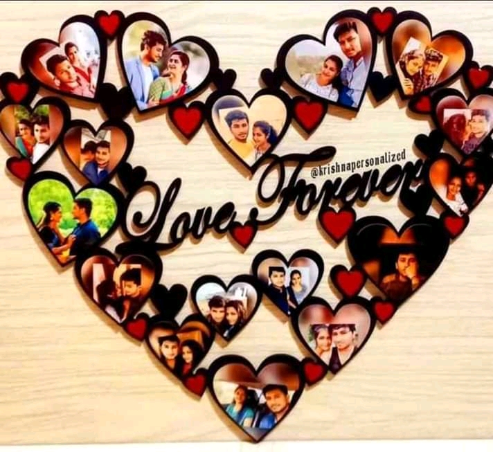 Celebrate your love story with this Custom Heart Shape “Love Forever” Photo Collage Frame, featuring multiple heart-shaped photo slots and a beautiful “Love Forever” text cut-out, perfect for romantic wall décor and gifting.