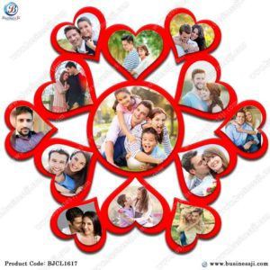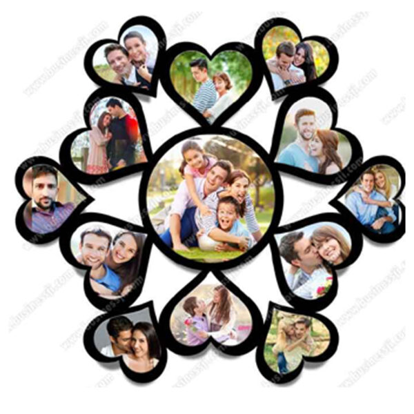 Capture love, joy, and cherished moments with this beautifully designed Heart Collage Photo Frame, crafted from premium sublimation wood and measuring 15×15 inches. This heart-themed wall decor piece features 13 photo slots—12 heart-shaped and 1 circular center—making it the perfect showcase for your most treasured photographs.