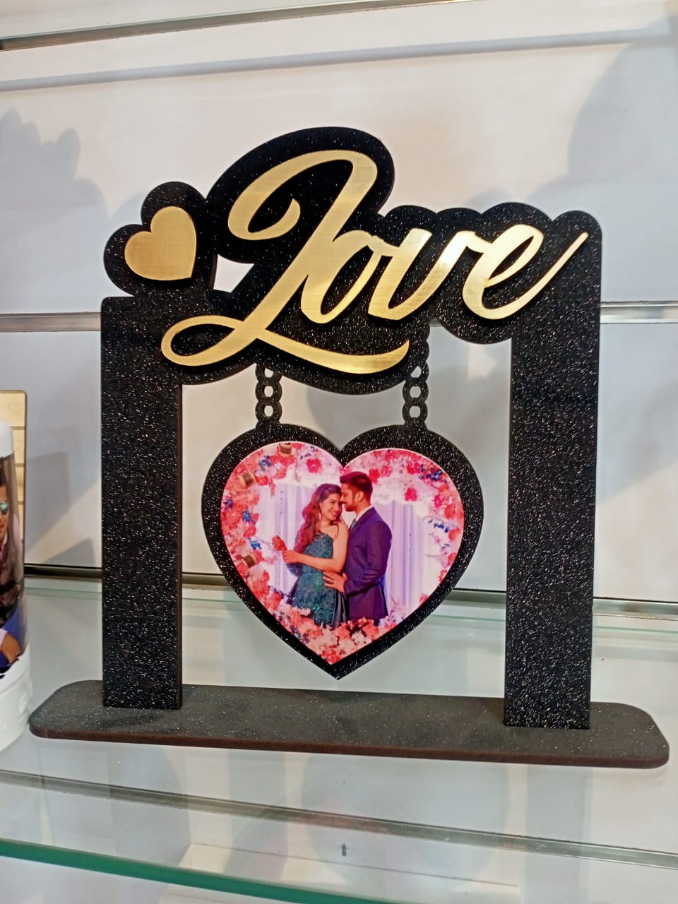 Display your cherished memories with this Personalized Love Hanging Heart Photo Frame. Featuring a beautiful “Love” design, a heart-shaped hanging photo slot, and a sleek black-gold finish, this elegant frame is perfect for anniversaries, weddings, Valentine’s Day, and special occasions.