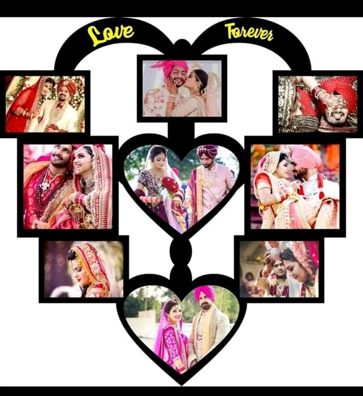 This unique wedding picture collage features multiple slots to insert your most memorable wedding day photos. Whether it’s your pre-wedding shoot, engagement ceremony, bridal moments, or couple portraits, this frame allows you to relive your special day every time you look at it.