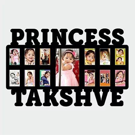 Personalized Wooden Photo Frame Collage – “Princess” Custom Name Wall Hanging – 13 Photo Slots – 12-18 Inch – Jarnet Decorative Memory Frame