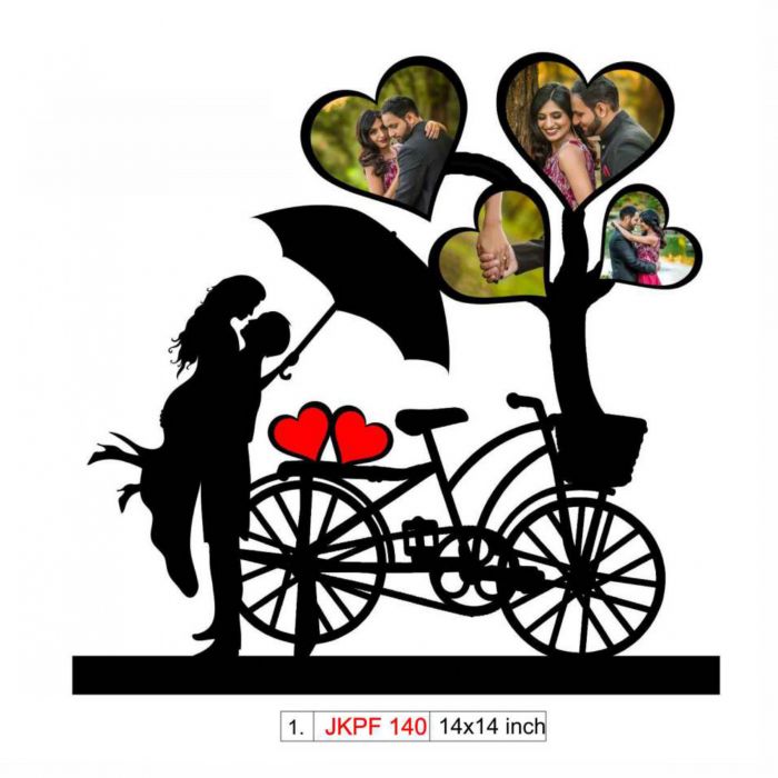 Celebrate love with this Romantic Couple Photo Frame, featuring a silhouette of a couple, a bicycle, and heart-shaped photo slots. This beautifully designed wall décor is a perfect gift for couples, weddings, and anniversaries.